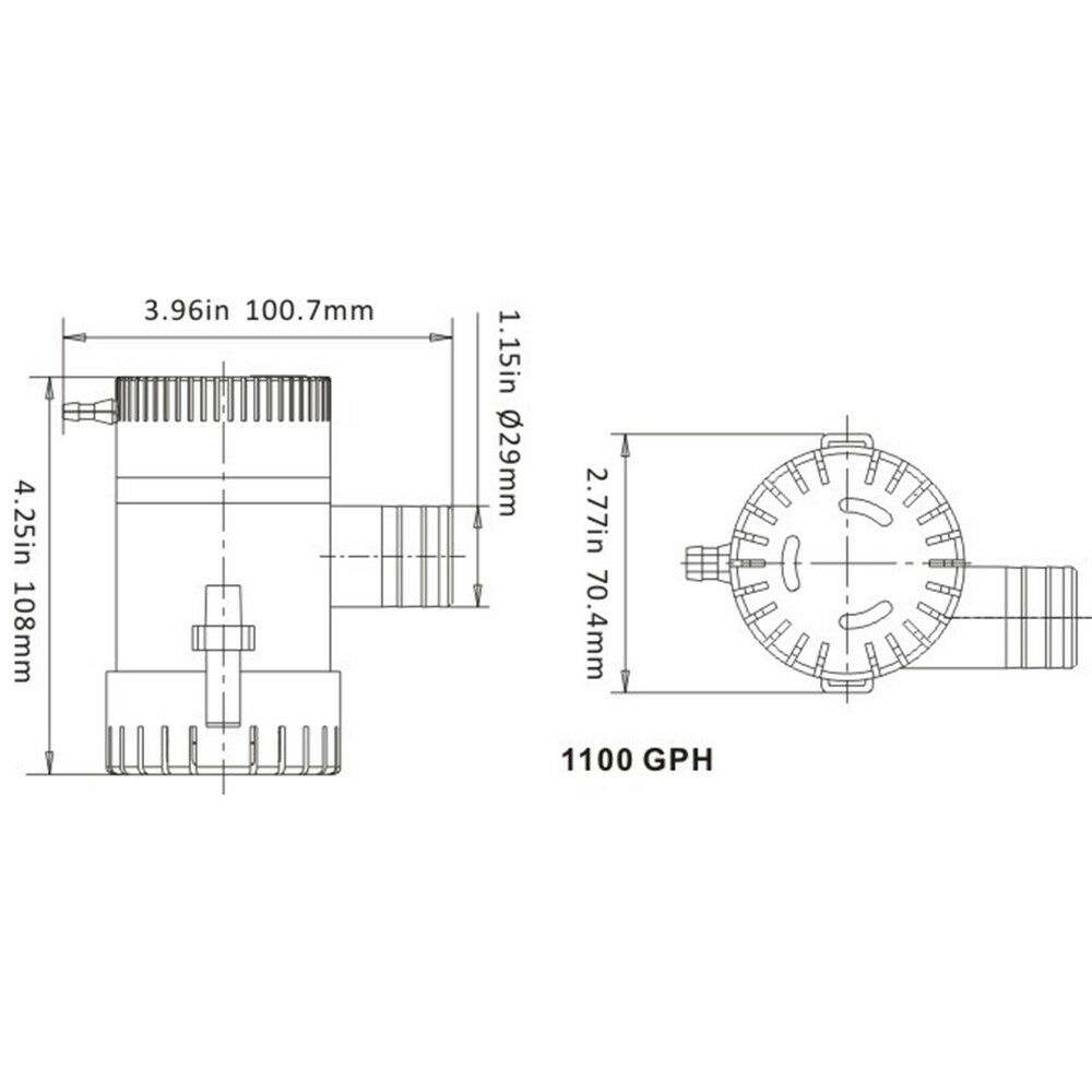 12V 1100GPH DC Marine Bilge Pump Submersible