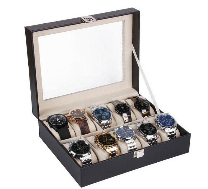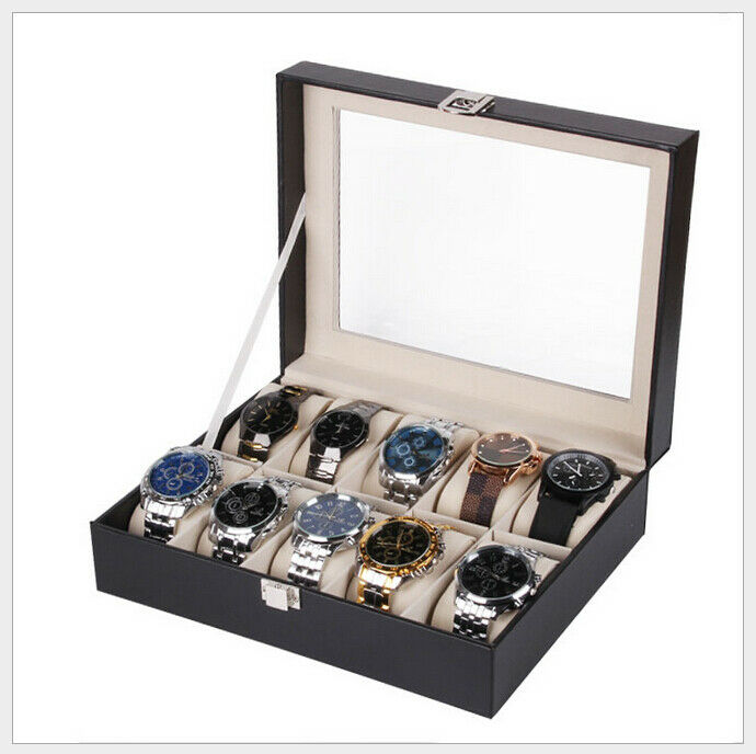 10 Postitions Uhr Aufbewahrungsbehälter Uhr Anzeigebox Uhrenschatulle