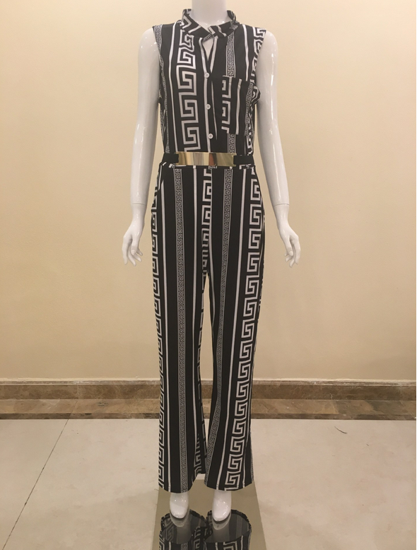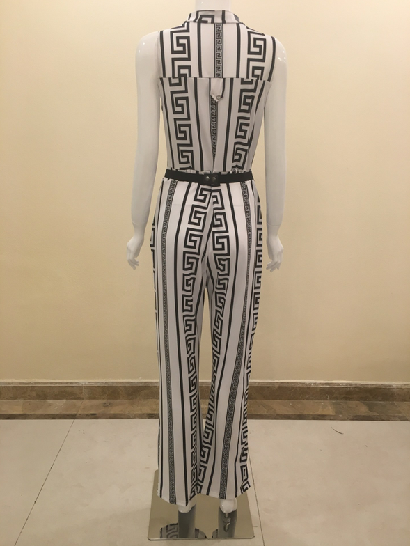 This elegant jumpsuit flaunts pristine tailoring and the season's high-waisted silhouette.