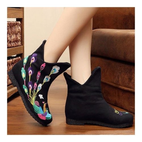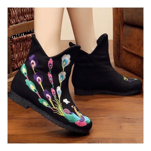 Blatant Peacock Vintage Beijing Cloth Shoes Embroidered Boots black with cotton