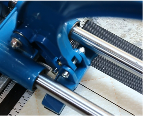 The 23.6" (600mm) Manual Laser Tile Cutter is designed for both ceramic and porcelain tile. The simple score and snap process is a quick way to rip and diagonally cut tiles. The dual, chrome-plated rugged steel rails and linear ball bearing slides are designed to for smooth scoring on large tiles. The broad base, heavy duty rubber pads and cutting table extensions provide extra stability for larger, thicker tiles. The high leverage bicycle grip handle makes cutting easier.