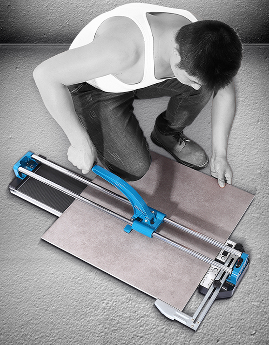 The 23.6" (600mm) Manual Laser Tile Cutter is designed for both ceramic and porcelain tile. The simple score and snap process is a quick way to rip and diagonally cut tiles. The dual, chrome-plated rugged steel rails and linear ball bearing slides are designed to for smooth scoring on large tiles. The broad base, heavy duty rubber pads and cutting table extensions provide extra stability for larger, thicker tiles. The high leverage bicycle grip handle makes cutting easier.