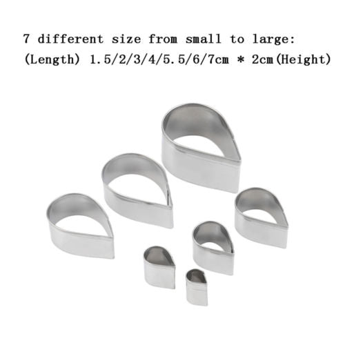 feature:Stainless steel water droplets cutters mold 7pc's/set, Rose petals die design is baking essential cake decoration tools, Made of 304 stainless steel, durable and easy to clean.