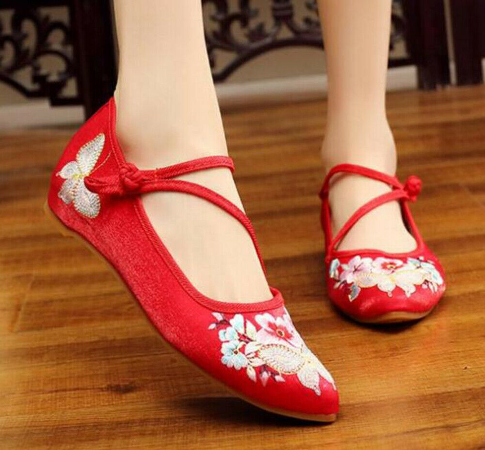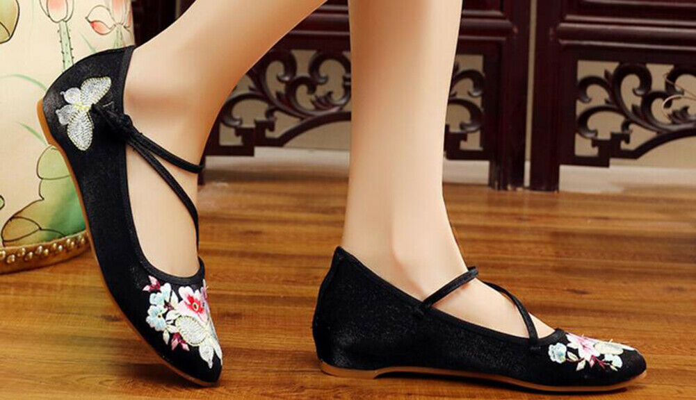 Chinese Ethnic Embroidery Ballet Flat Marry Janes Dancing Shoes Butterfly