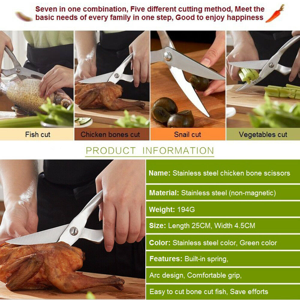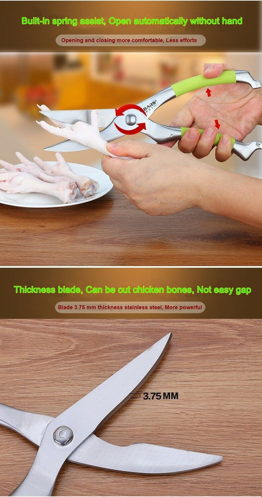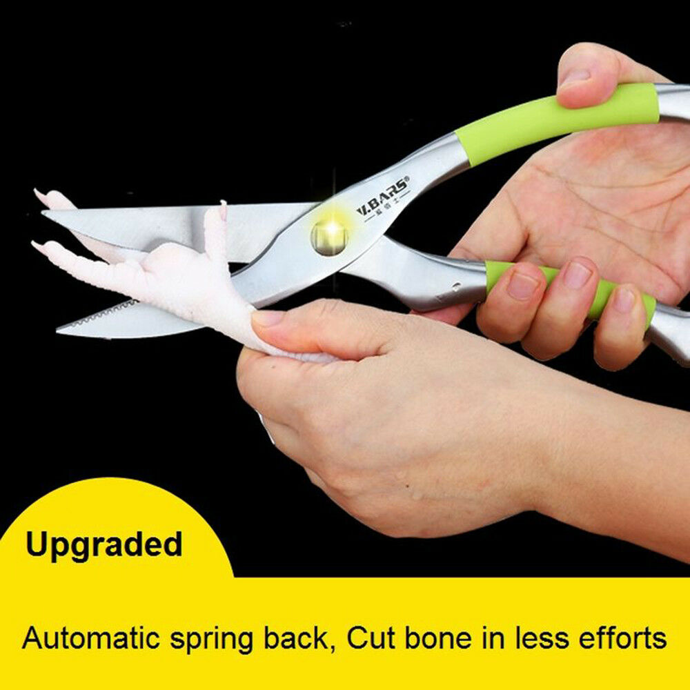 Description Description:Stainless steel kitchen scissors, Built-in spring boost,Scissors open automatically without hand, Opening and closing more comfortableUpgraded version automatic spring back, Save...