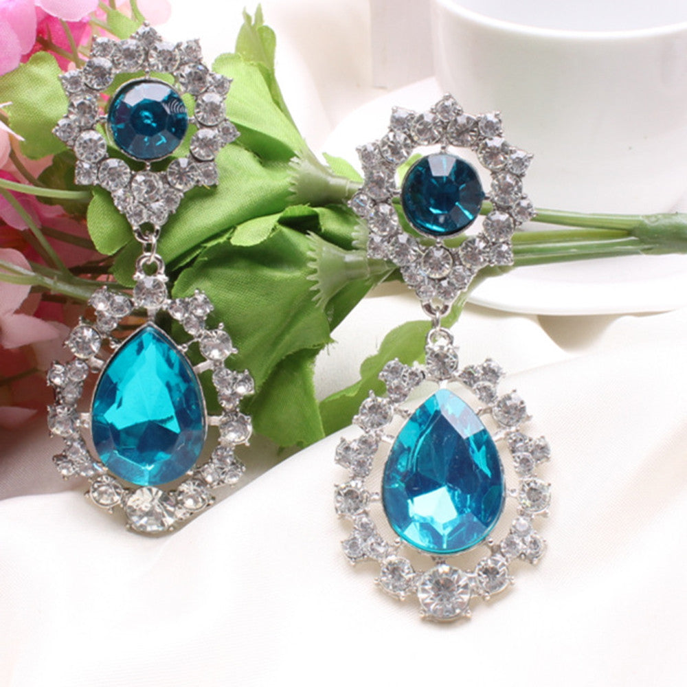 C124 explosion models in Europe and America exaggerated diamond earrings diamond flower earrings Hot new jewelry BLUE