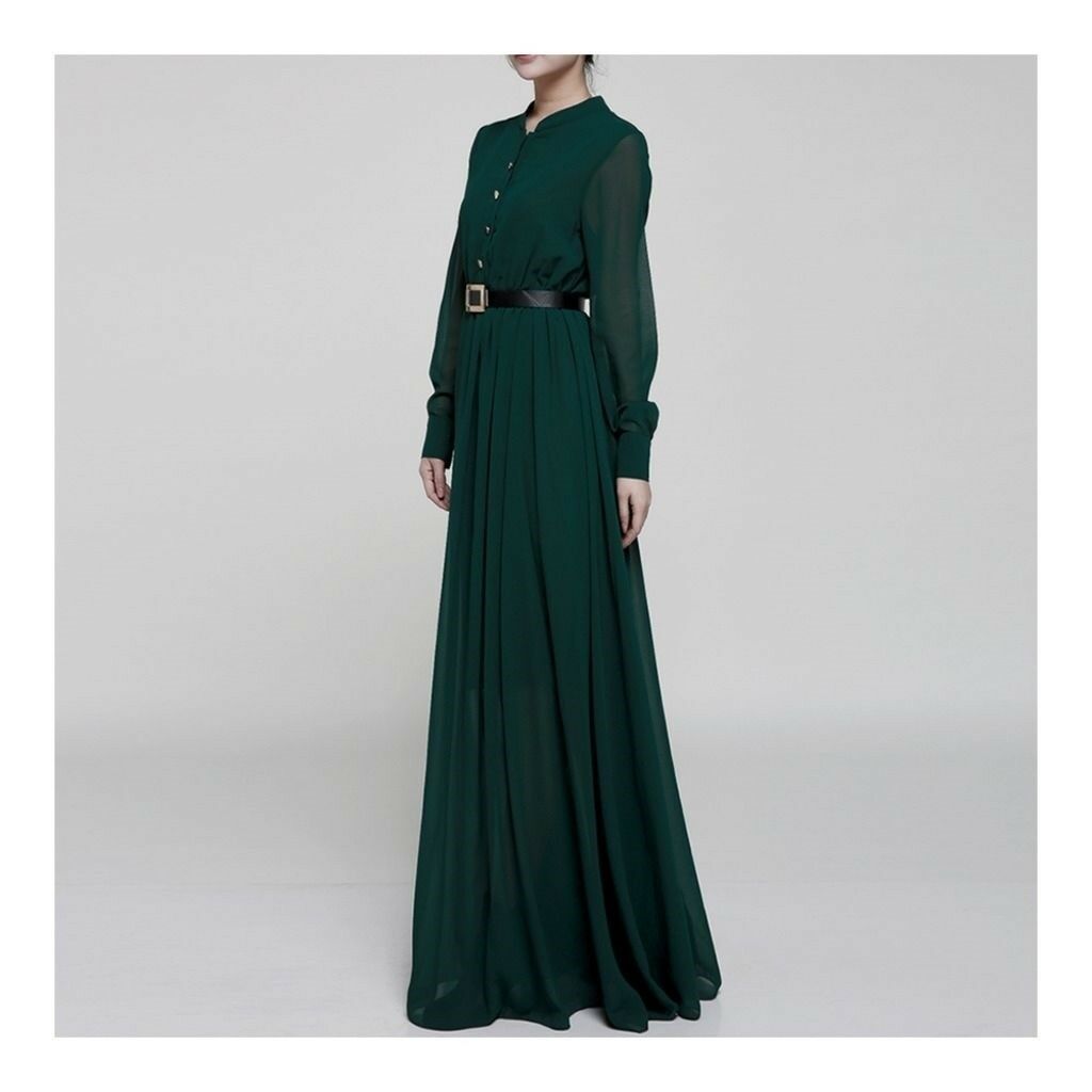 Long Sleeve Big Peplum Chiffon Long Dress Stand Collar S