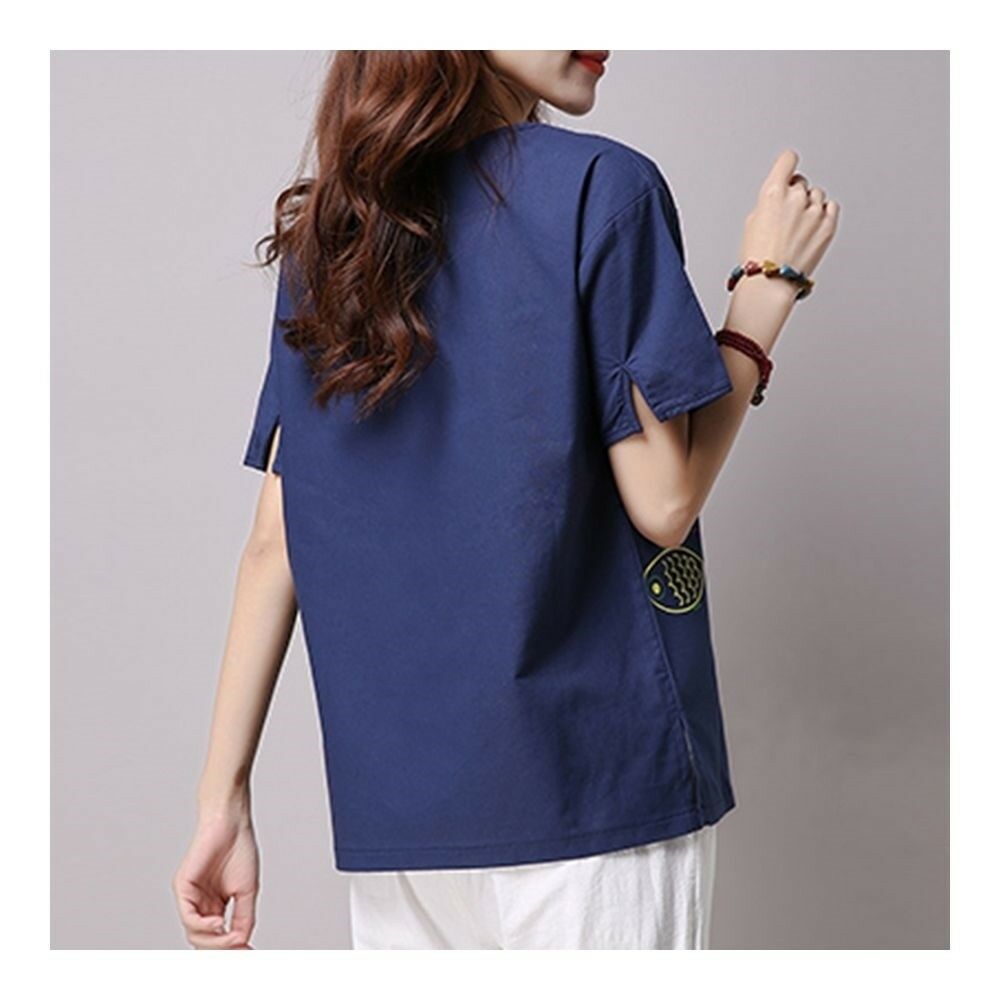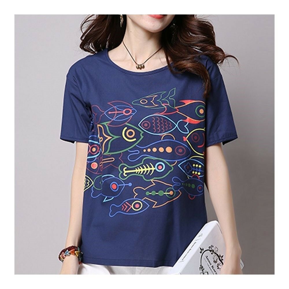 You need such an all-match T-shirt for this hot summer to match with all kinds of bottoms;interesting little fish printing adds elegance.
