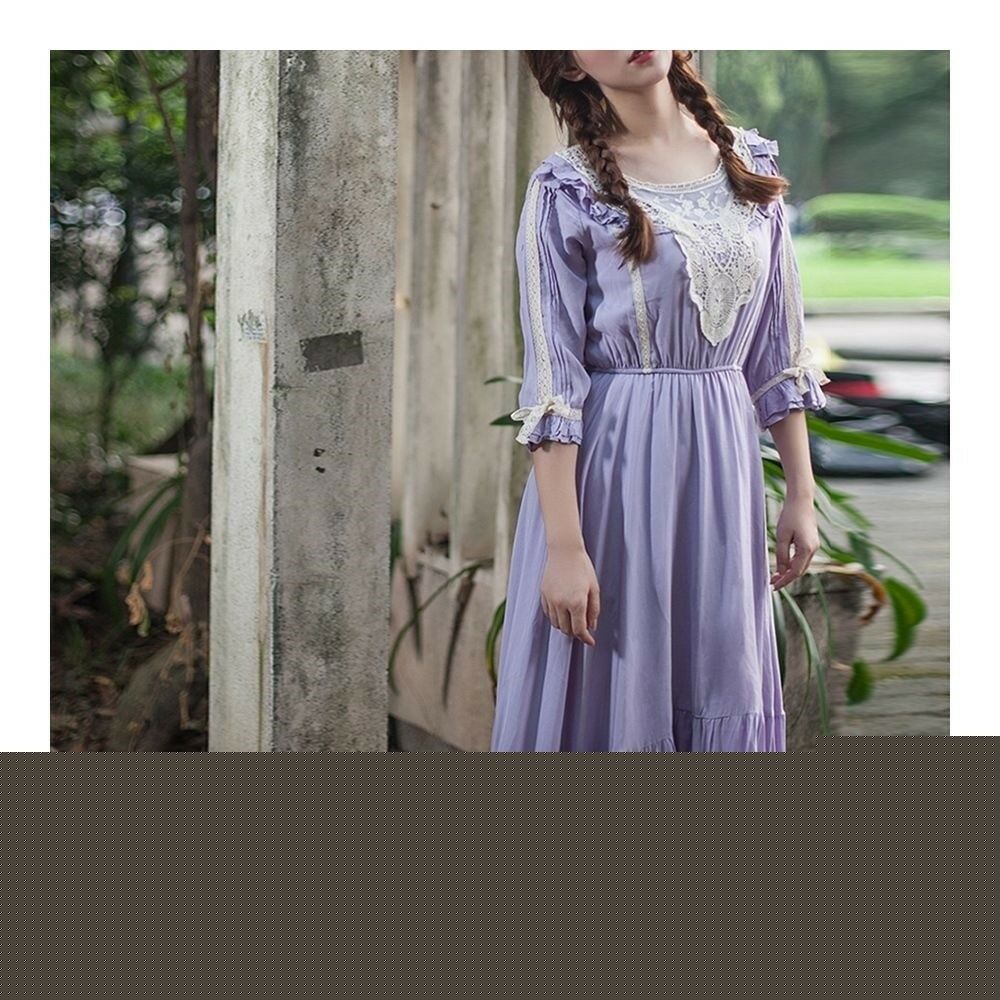 Mercerized Cotton Embroidery Craft Vintage Long Dress violet S