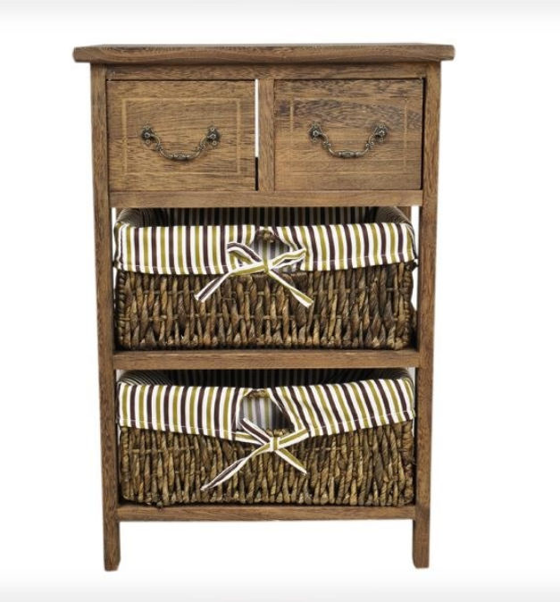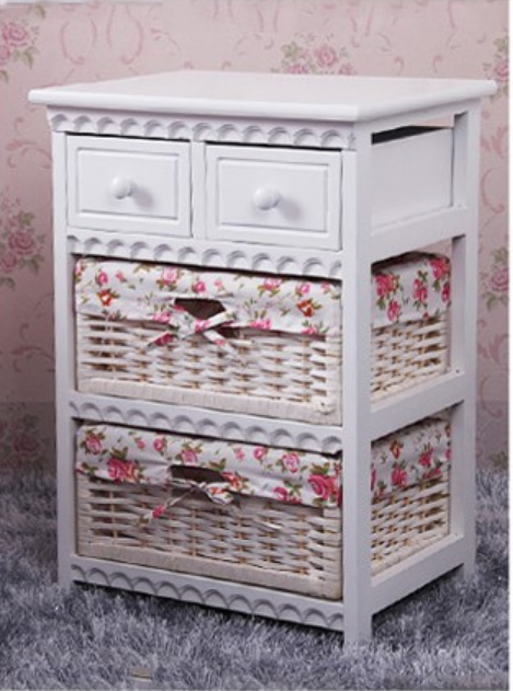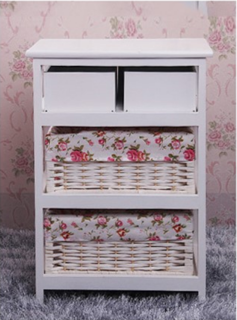 Country-Style Cottage 3 Layers Bedside Table Vintage with 2 baskets 2 Drawers