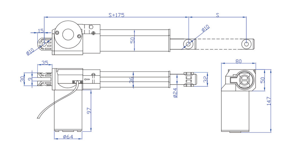 DC 12V 100mm Stroke 500N 20MM/s Linear Actuator