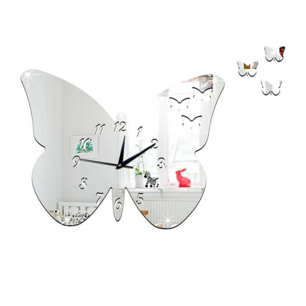 DIY Creative Decoration Butterfly Princess Mirror Quartz Wall Clock