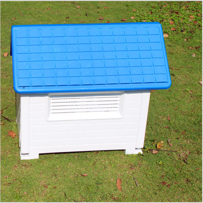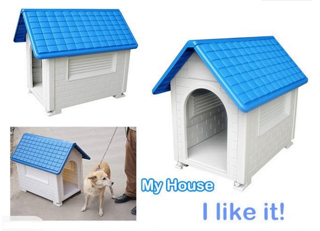This pet house is an ideal fit to be dog's new home. White with blue roof dog house accommodates most any dog. Its contemporary design can nicely complement home decor as well. This dog house features a stylish design, removable roof for easy cleaning, easy snap together assembly. It is very durable, yet far more light-weight than wood plus it doesn't absorb odors the way wood does. Also, it can protect your pets from heavy rain