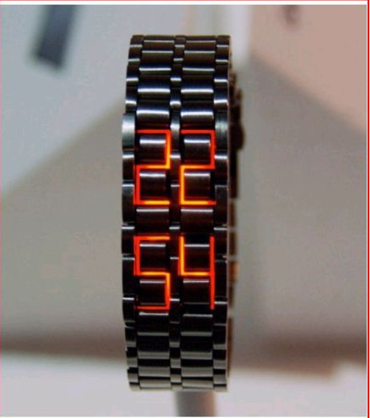 Introducing The Iron Samurai, an ice-blue or red coloured futuristic LED watch influenced by Japanese design. Rewriting the rules of how temporal data (time) should be displayed.
