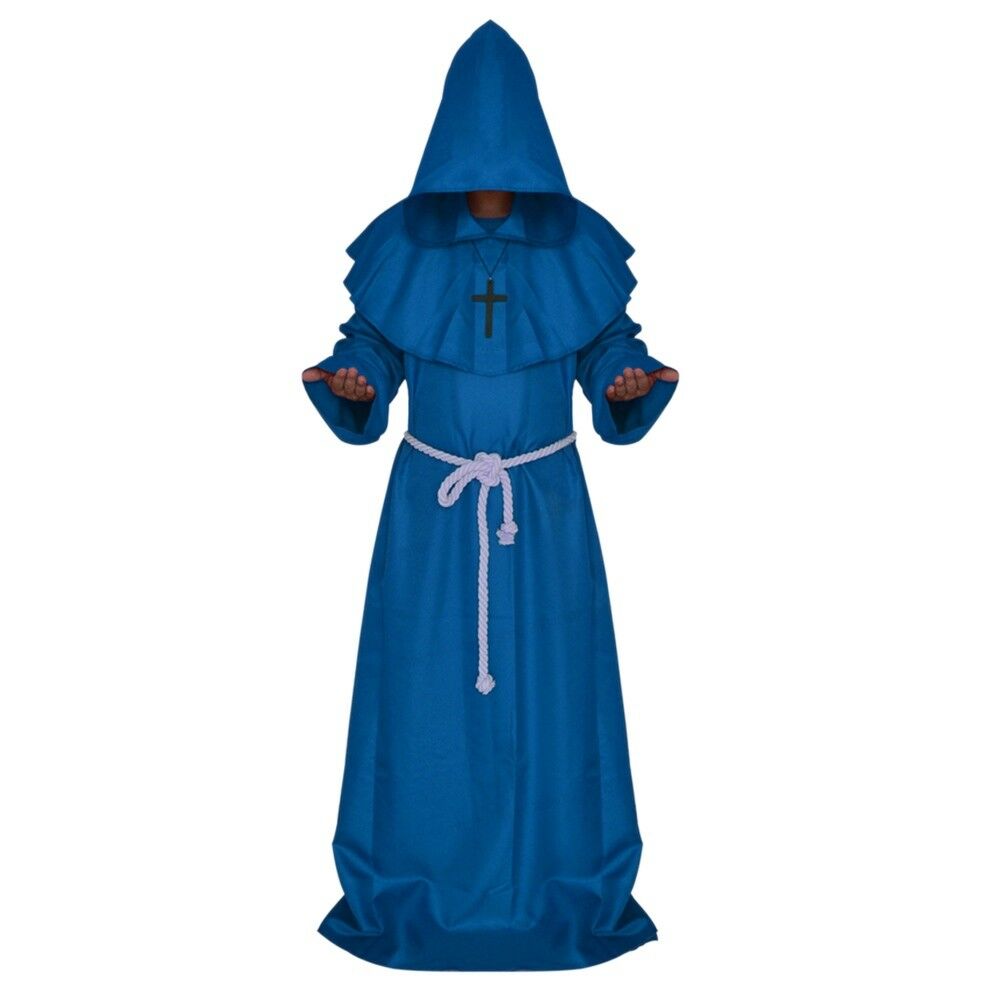 Halloween Cosplay Middle Ages Monk Wizard Christian blue S