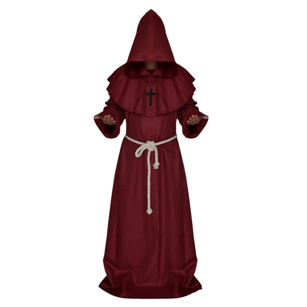 Halloween Cosplay Middle Ages Monk Wizard Christian red S