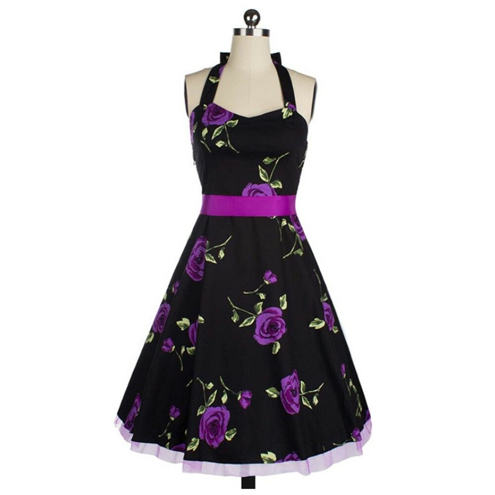 Hepburn Style Vintage Dress 50s Printing Halt purple