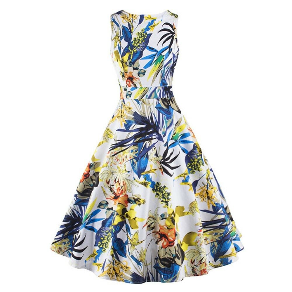 Description Keen on printed flower,similar color belt adds elegance. Features: 100% brand new and high quality Vintage Hepburn style Soft and comfortable...