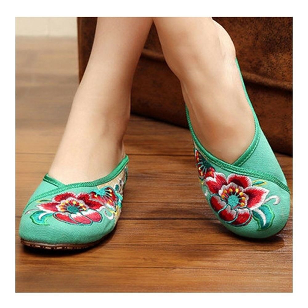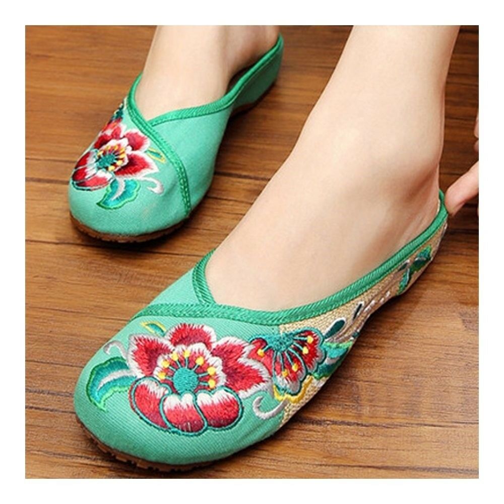 Delicate embroidery,colorful string overlap,juxtapose and intervain produces flamboyant but not vulgar color effect;the blent color of dark and light has Chinese painting's render effect;it uses top grade material,color is staid and simple,like go through time's baptism,showing perfect literary smell;it comforms to human engineering,it is comfortable and protects the feet. Wearing it is like going through thousand years time,eyesight like wave,smile like flower,moving step like lotus.