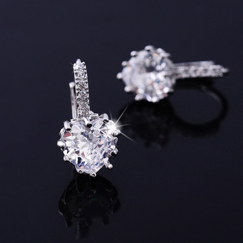 Finger ring shape earrings are unique,shows designer's originality,its front side is diamanted with many small Rhinestones.Carefully cutted peach heart shape zircons is stylish and all-match.